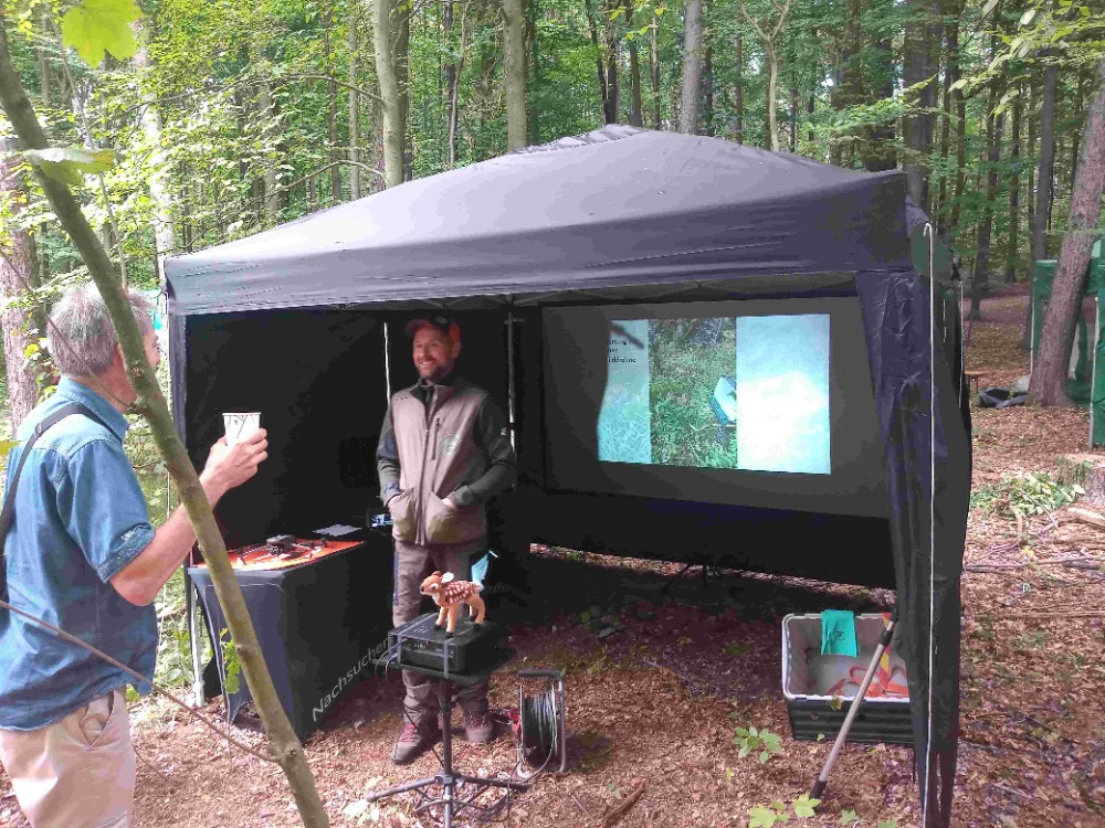 Mit Angeboten für Kopf und Gaumen hat der Jagdverband Hainichen e. V. am 23. August den Waldtag des Staatsbetriebs Sachsenforst in Kriebstein bereichert. An den Ständen lernten die Besucher nicht nur das heimische Wild kennen. Experten erklärten, wie Drohnen die Kitzrettung unterstützen und welche Ausrüstung eine Nachsuche zum Erfolg führt. Für Kinder lag Mal- und Bastelmaterial bereit, die Wissbegierigen  bedienten sich an Broschüren über Jagd und Naturschutz. Bei gegrillten Wild-Rostern, Fassbier, Kaffee und Kuchen kamen Besucher und Jäger leicht ins Gespräch. Musikalisch umrahmten die „Frankenberger Jagdhornbläser“ die Veranstaltung.